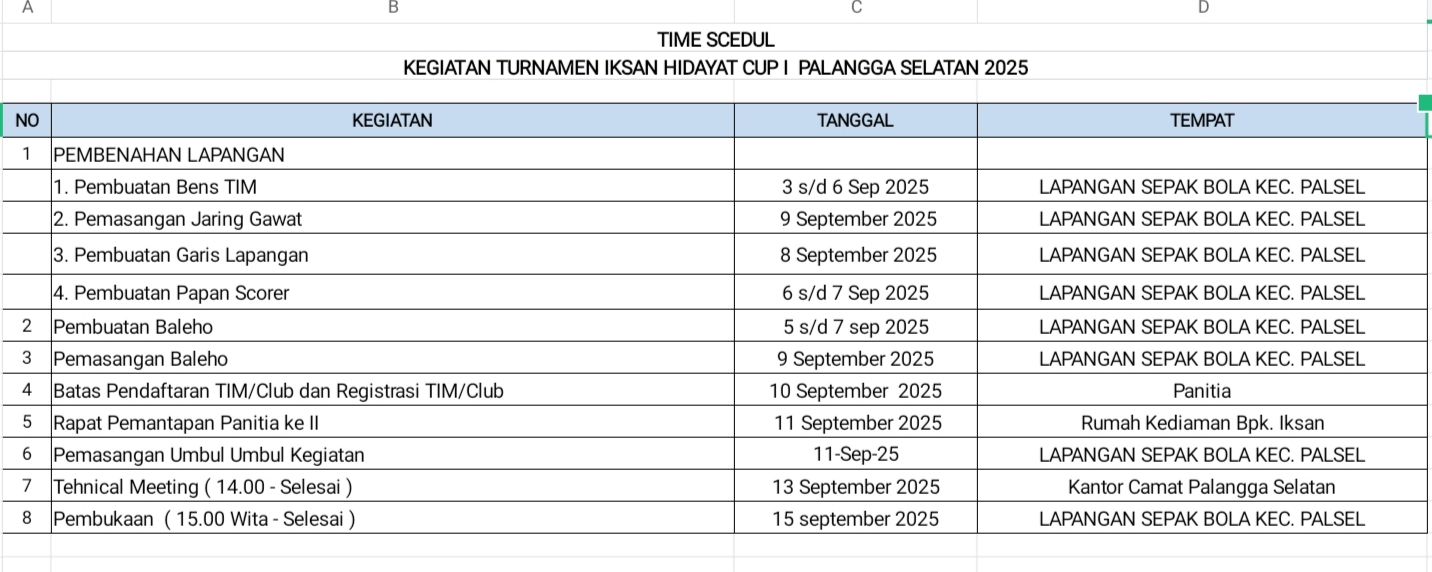 Adapun Time schedule yang telah dibuat dan sepakati Panitia Pelaksana terdiri dari :