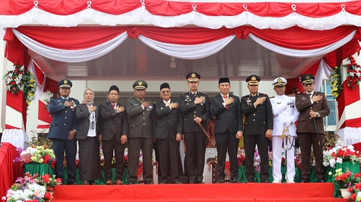 Hadir dalam pelaksanaan upacara, selain Bupati Konsel H. Surunuddin Dangga juga dihadiri oleh Forkopimda Konsel.